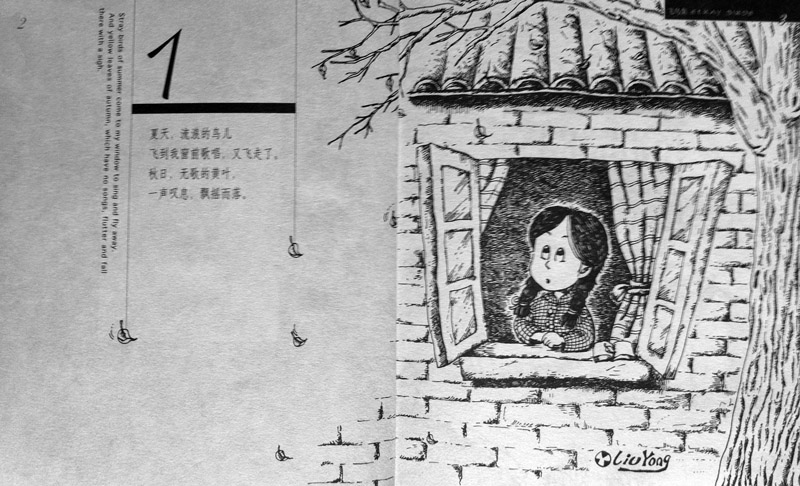 Stray birds of summer come to my window to sing and fly away. And yellow leaves of autumn,which have no songs,flutter and fall there with a sigh. 夏天,流浪的鸟儿飞到我窗前歌唱,又飞走了。秋日,无歌的黄叶,一声叹息,飘摇而落。 内文试读: